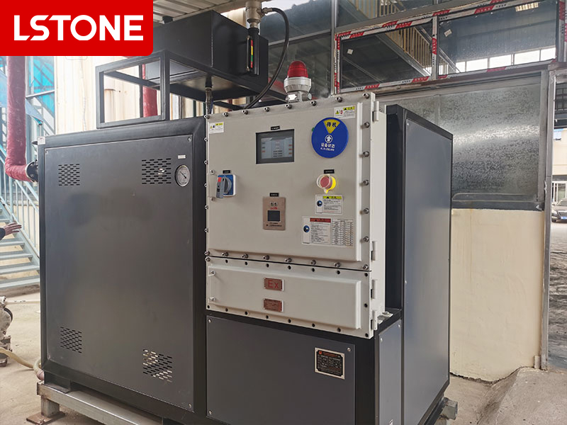 油溫機(jī)(包括導(dǎo)熱油爐和導(dǎo)熱油加熱器)冒煙是一個(gè)非常危險(xiǎn)的信號(hào),必須立即采取行動(dòng)。冒煙通常意味著有物質(zhì)在高溫下分解或燃燒,最常見的原因是導(dǎo)熱油泄漏或過熱。冒煙的顏色和情況不同,其原因也不同。以下是導(dǎo)致油溫機(jī)冒煙的幾個(gè)主要原因: 一、最常見且最危險(xiǎn)的原因:導(dǎo)熱油泄漏 這是導(dǎo)致冒煙最主要、最緊急的情況。高溫導(dǎo)熱油從系統(tǒng)中泄漏出來,接觸空氣或設(shè)備上的高溫部件,就會(huì)迅速冒煙甚至起火。 現(xiàn)象:通常先看到白色或青煙,隨后可能變?yōu)闈饬业暮跓煟橛袕?qiáng)烈的燒焦味或油味。同時(shí)可能會(huì)看到油漬。 泄漏點(diǎn)可能位于: 法蘭、接頭或密封處:由于密封圈老化、損壞或螺栓松動(dòng)。 循環(huán)泵的機(jī)械密封:泵軸密封失效是常見的泄漏點(diǎn)。 加熱管:長期使用后腐蝕、結(jié)焦導(dǎo)致管壁穿孔。 閥門或軟連接:閥門損壞或金屬軟管破裂。 油箱或膨脹箱:如果油位過高或沸騰,導(dǎo)熱油可能從油箱溢出。 二、系統(tǒng)內(nèi)部問題:導(dǎo)熱油過熱與分解 1.導(dǎo)熱油嚴(yán)重劣化: 原因:導(dǎo)熱油長期超溫使用、氧化或使用年限過長,導(dǎo)致油品裂解,形成碳化顆粒。這些焦炭狀物質(zhì)附著在加熱管上,在高溫下會(huì)冒煙。 現(xiàn)象:從排氣口冒出濃烈的黑煙和焦糊味。 2.系統(tǒng)內(nèi)有水分或污染物: 原因:檢修后系統(tǒng)未完全干燥,或誤將其他液體混入系統(tǒng)。水在高溫下瞬間汽化,體積膨脹,帶著導(dǎo)熱油從膨脹槽噴出,造成“噴油”和冒煙。 現(xiàn)象:通常在初次啟動(dòng)或檢修后升溫過程中發(fā)生,伴有“噼啪”聲,并從膨脹槽冒出大量白煙。 3.加熱管干燒: 原因:系統(tǒng)缺油、循環(huán)泵故障或管道堵塞,導(dǎo)致導(dǎo)熱油無法流動(dòng)或流量不足。加熱管表面的熱量無法被及時(shí)帶走,溫度急劇升高,不僅會(huì)使附著在上方的殘油碳化冒煙,更可能燒毀加熱管。 現(xiàn)象:設(shè)備報(bào)警,從加熱腔體附近冒出白煙或黑煙。 總結(jié):油溫機(jī)冒煙是最高級(jí)別的警報(bào)之一。它絕大多數(shù)情況下指向?qū)嵊托孤┗蚣訜峁芨蔁@兩個(gè)嚴(yán)重故障,必須立即采取緊急停機(jī)措施,并交由專業(yè)人員處理。